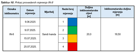 1. Probnom sondom ispitati prohodnost i duljinu inklinometarske instalacije, te prema tome prilagoditi buduća mjerenja