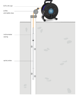 -Vertikalni inklinometar je geotehnički mjerni uređaj ugrađen u okomitu bušotinu, koji pomoću senzora bilježi kutna odstupanja od vertikale. Analizom tih podataka po dubini određuju se horizontalni pomaci tla ili konstrukcija radi praćenja stabilnosti terena i objekata.